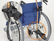 ※ボンベを装着し、車いす本体が後方に傾く恐れがある場合は転倒防止バーを併用してご利用ください。